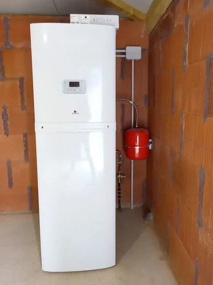 Installation de la pompe à chaleur (double service assurant le chauffage et la production d’eau chaude).
